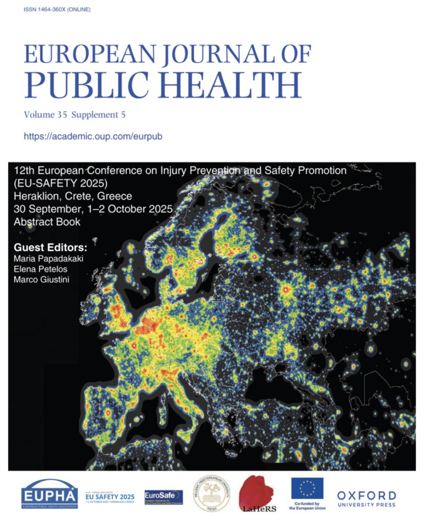 Με ιδιαίτερη χαρά ανακοινώνουμε ότι το συμπληρωματικό τεύχος (supplement) του συνεδρίου EU-Safety 2025 έχει πλέον δημοσιευθεί online στο European Journal of Public Health (Τεύχος 35, Supplement 5). Η δημοσίευση αυτή αποτελεί ένα σημαντικό ορόσημο για την ευρωπαϊκή κοινότητα της δημόσιας υγείας και της πρόληψης τραυματισμών, συγκεντρώνοντας επιστημονικές εργασίες υψηλής ποιότητας που καλύπτουν σύγχρονα ζητήματα ασφάλειας, πρόληψης ατυχημάτων και τεκμηριωμένης χάραξης πολιτικής.