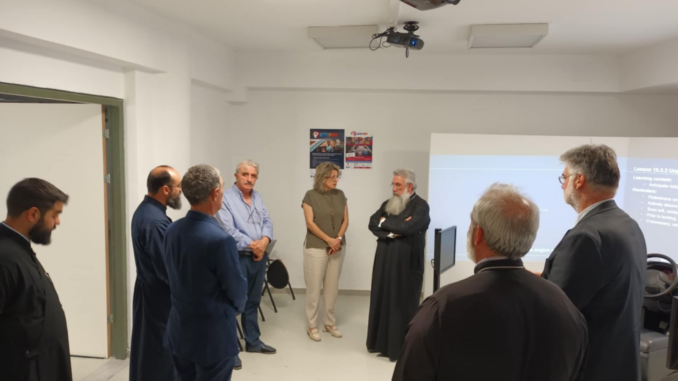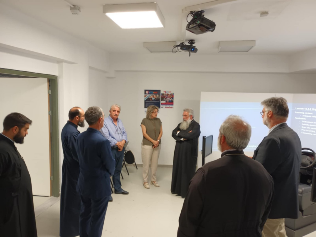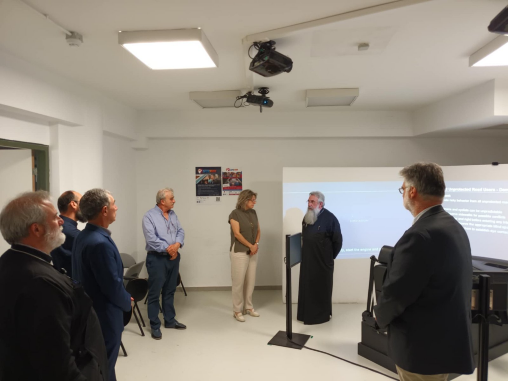 Με ιδιαίτερη χαρά και τιμή, το Ελληνικό Μεσογειακό Πανεπιστήμιο (ΕΛΜΕΠΑ) υποδέχθηκε τη Δευτέρα 6 Οκτωβρίου 2025 τον Σεβασμιώτατο Αρχιεπίσκοπο Κρήτης κ.κ. Ευγένιο στην Πανεπιστημιούπολη Ηρακλείου. Ο Σεβασμιώτατος, με αφορμή την έναρξη της νέας ακαδημαϊκής χρονιάς, τέλεσε Αγιασμό στον προαύλιο χώρο του Πανεπιστημίου και συναντήθηκε με την πρυτανική αρχή. Στο πλαίσιο της επίσκεψής του περιηγήθηκε σε δομές και εγκαταστάσεις του ΕΛΜΕΠΑ, μεταξύ των οποίων ήταν και το Εργαστήριο Υγείας και Οδικής Ασφάλειας (LaHeRS). Στο πλαίσιο της περιήγησης, ο Σεβασμιώτατος ενημερώθηκε αναλυτικά για τις παρεχόμενες υπηρεσίες του Εργαστηρίου και για τις πρωτοποριακές υποδομές—όπως προσομοιωτές οδήγησης αυτοκινήτου/μοτοσικλέτας, ηλεκτροκίνητα οχήματα και εφαρμογές κινητού τηλεφώνου για την εκπαίδευση των εφήβων στη λήψη σωστών αποφάσεων σε δύσκολες κοινωνικά περιστάσεις.